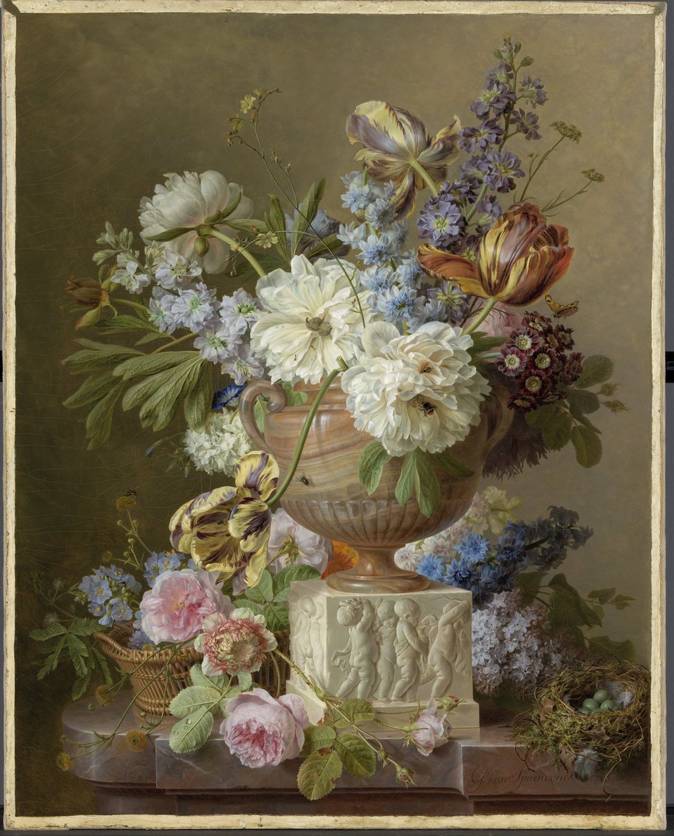 De insecten die zijn geportretteerd komen iha binnen niet voor. Diverse kevertjes, bijen, mieren en een vlinder zijn typische buitendieren, ook in 1783 al. Gerard was een zeer bekwame decoratieschilder, dat wel weer. https://nl.wikipedia.org/wiki/Gerard_van_Spaendonck